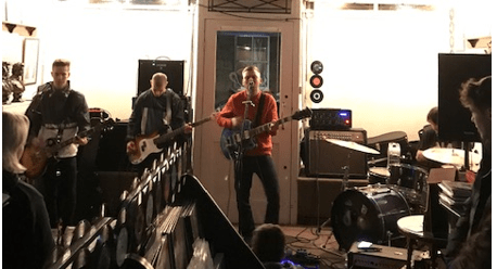 Indie Street Club were followed by Divine Intervention. They went through some of their established songs, mixed in with a few new ones. As at the previous gig Clunk had attended a DI fan or two thought it would be great to start calling for drummer Alex to take his shirt off, this went on for quite a while, somewhat distracting the band in between songs. Joe Lush slowed it all down with the latest single ‘smile’ before getting in and bouncing around in amongst the onlookers and the vinyl in the café. Will Pledge, new bass player, took over singing duties for one song. Divine Intervention head out on tour, dates are in Clunk News Latest.