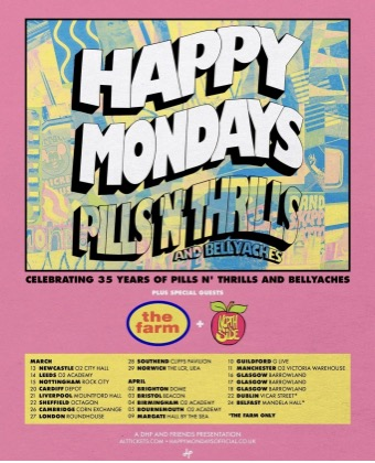 Signed by the late, great Anthony ‘Tony’ Wilson to the still-influential Factory Records in 1985, Happy Mondays released four albums on the label – ‘Squirrel And G-Man Twenty Four Hour Party People Plastic Face Carnt Smile (White Out)’(1987), ‘Bummed’(1988), ‘Pills ‘N’ Thrills And Bellyaches’(1990) and ‘…Yes Please!’ (1992).