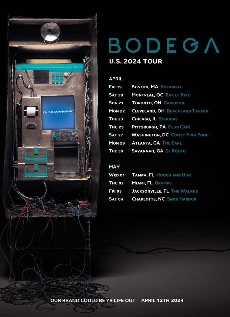 I’m writing to tell ya that the third BODEGA full length OUR BRAND COULD BE YR LIFE drops April 12th on Chrysalis Records (!). I produced it myself w/ Adam Sachs mixing + engineering (who also worked on Broken and Xtra Equipment). I think it’s our best one yet by a long shot (although I am biased). It’s a ‘remake’ of a record me + Nik’s old band Bodega Bay put out in 2015 altho it has some brand nu one’s too.