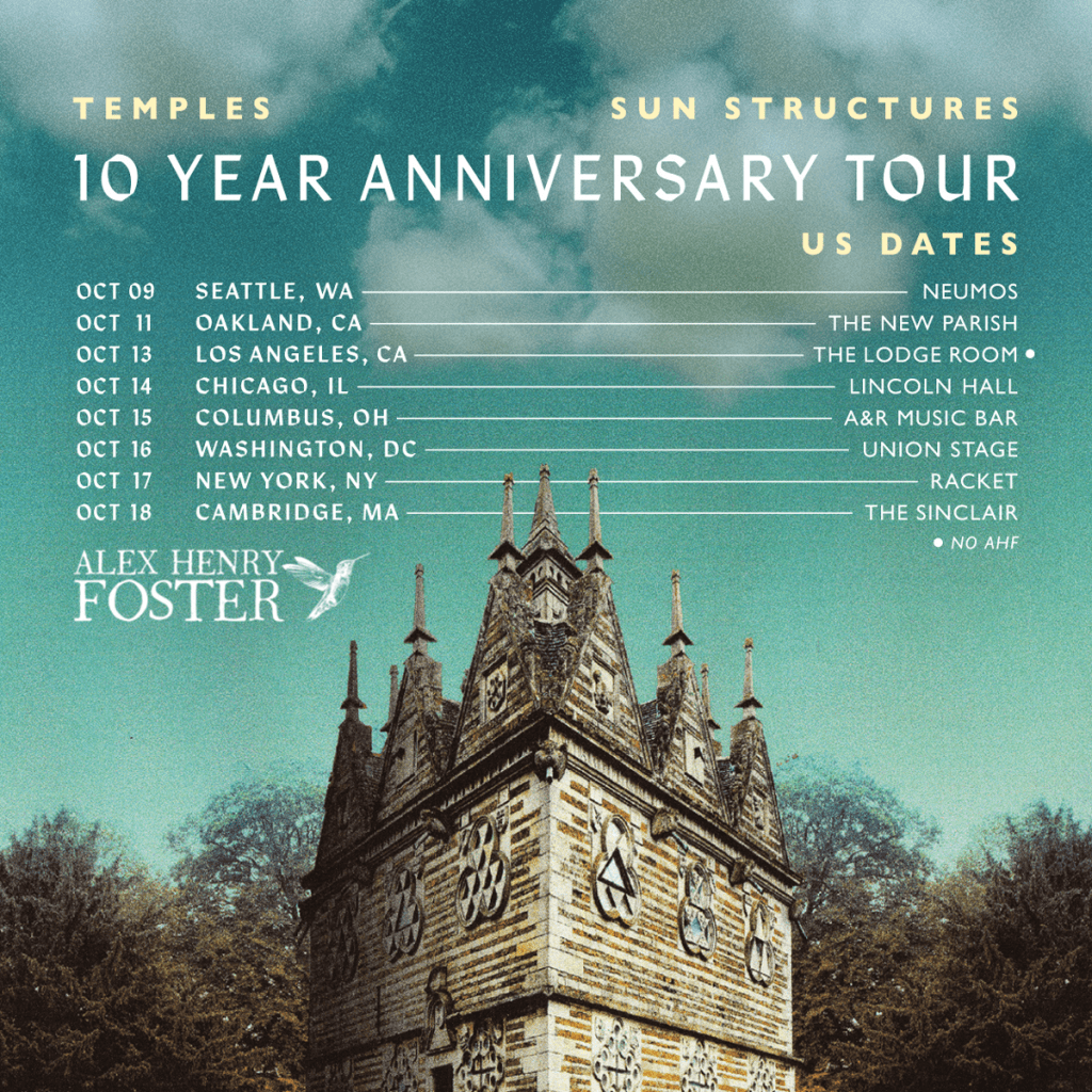 | British neo-psychedelic rockers Temples are celebrating a milestone this year: their debut album Sun Structures, turns 10 years old. They’re taking the album on the road this October, embarking on the Sun Structures Anniversary Tour across select U.S. cities. Today, the band shares exciting news: due October 4th, the Other Structures EP is a collection of B-sides to commemorate their exciting anniversary and its corresponding tour. The EP’s lead single, “Day of Conquest”, is a never before released track from the Sun Structures recording sessions. “‘Day of Conquest’ was part of the Sun Structures album demos, and it probably would have been on the album, but we ran out of run time on the LP,” singer and guitarist, James Bagshaw, remembers. “I remember being fond of this song, and it was a pleasant surprise to go back and unearth the sonic layering. I love how the sections contrast in an interesting way, and the fact there isn’t really a chorus!” The Other Structures EP includes 4 B-sides, and two remixes from The SLP (of Kasabian) and from Robert Levon Been (of Black Rebel Motorcycle Club). “Day of Conquest” is also being shared alongside a music video that features some live performance clips and behind the scenes shots of the band. |